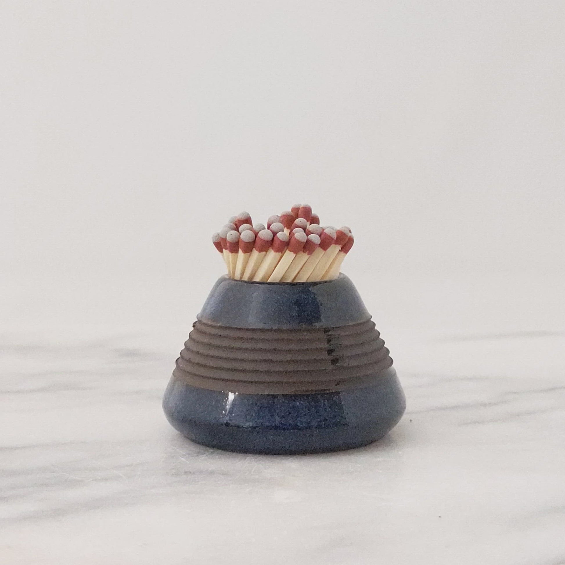 Match strikers come pre-filled with matches if they are picked up from my Toronto studio. Unfortunately, matches cannot be shipped. Strike anywhere matches are only available to purchase for local pick up in Toronto.