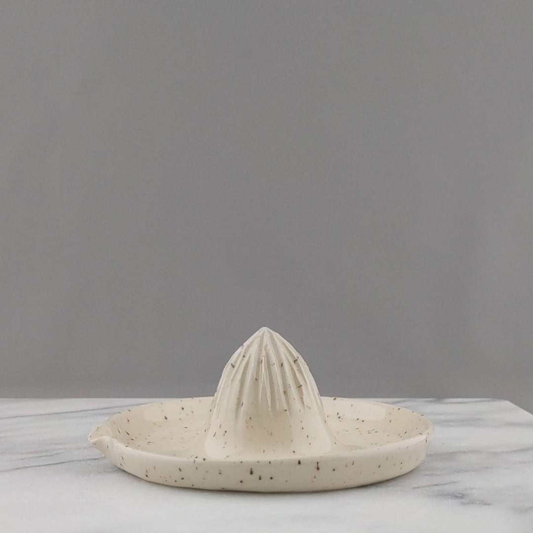 Experience the satisfying taste of freshly squeezed juice with our Handmade Juicer! Crafted with durable stoneware and handmade for a unique touch, this juicer is also dishwasher safe for easy clean-up. Juicer is 4.75 inches wide and 2.25 inches tall. A must-have addition to any bar or kitchen.